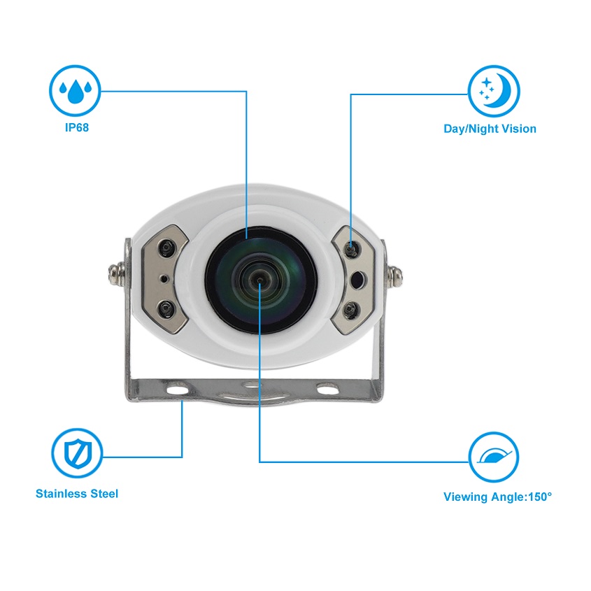 Maximize your vehicle's safety with our compact mini rear view camera, designed for easy installation in tight spaces. Despite its small size, it delivers impressive performance with a 150° wide viewing horizontal angle, perfect for ensuring a safe reversing experience. The camera is IP68 waterproof, providing reliable performance in any weather condition. With day/night vision capabilities, it offers clear footage in both bright and low-light environments, making it a versatile option for all driving conditions. Made from durable stainless steel bracket, this mini rear view camera is both robust and long-lasting, ensuring you get high-quality video without sacrificing space.
