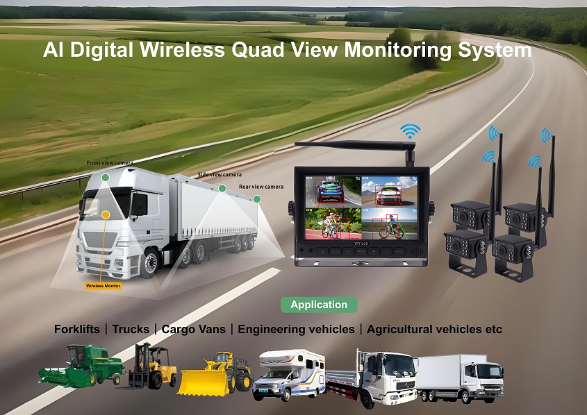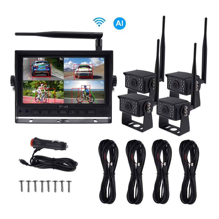 Standtop 7" AI 1080P Wireless Quad View Monitoring System is an advanced vehicle monitoring solution designed to provide drivers with a clear,smart,and comprehensive view around their vehicles. featuring a high-definition 7-inch screen, intelligent AI detection,wireless digital transmission, full-color imaging, and multi-camera support, this system ensures safer driving and easier reversing in all conditions,primarily designed for vehicles like trucks, RVs, trailers, buses, and heavy machinery,but it can also be used in other applications.