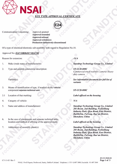 We have obtained E-Mark Certificate for monitor and cameras