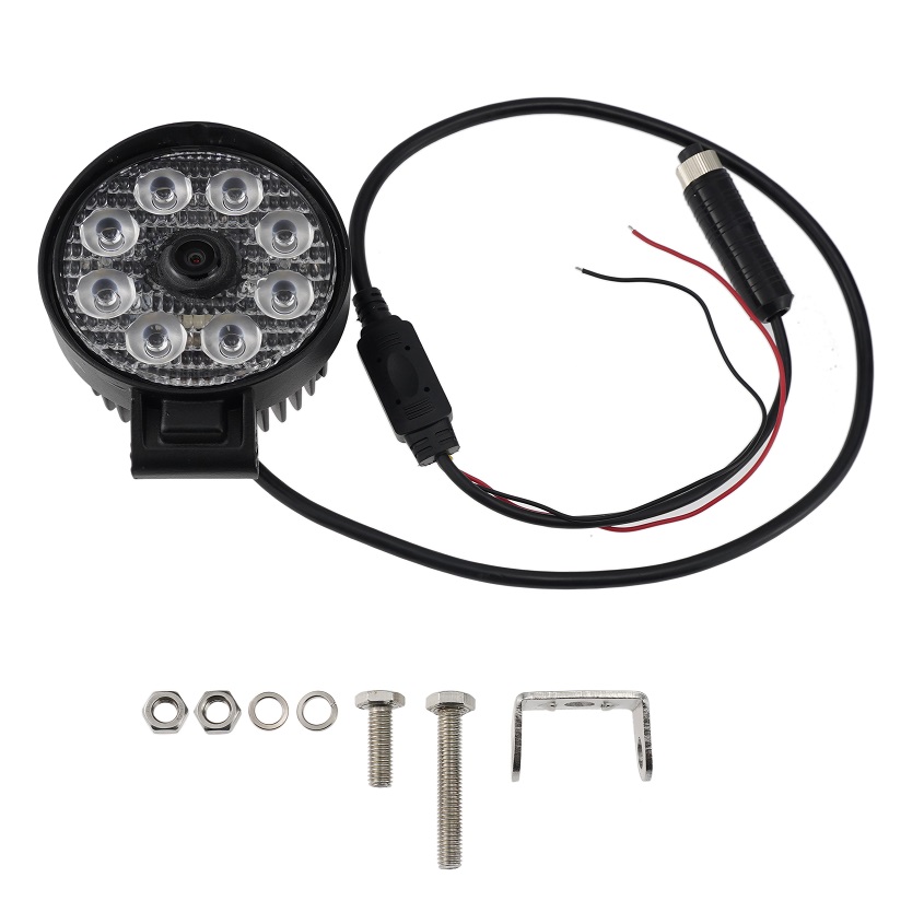 This model features a waterproof and dustproof black metal housing. 8 LED diodes provide high-quality illumination and are equipped with a 1080P AHD camera. It supports a wide range of video, 3D noise reduction, and automatic white balance for clear image quality, fast dynamic video response, no trailing shadows, and lifelike colors, enabling video capture at dusk or at night. the dedicated work light with a built-in camera not only displays images on the monitor but also records them to a recorder
